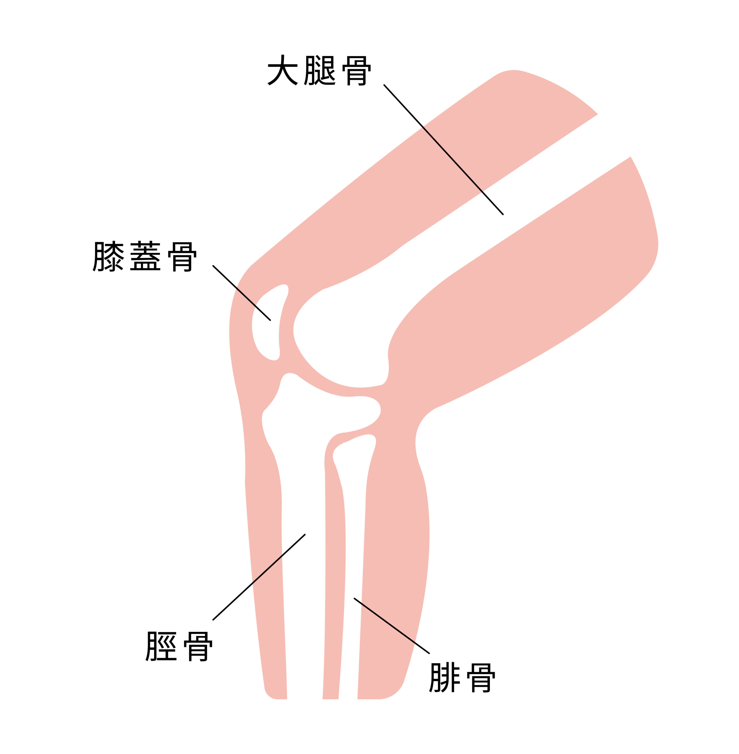 膝関節は、大腿骨(太もも)、脛骨(すね)、そして膝蓋骨(お皿)の3つの骨から構成されています。